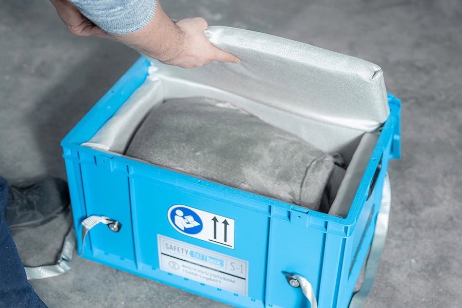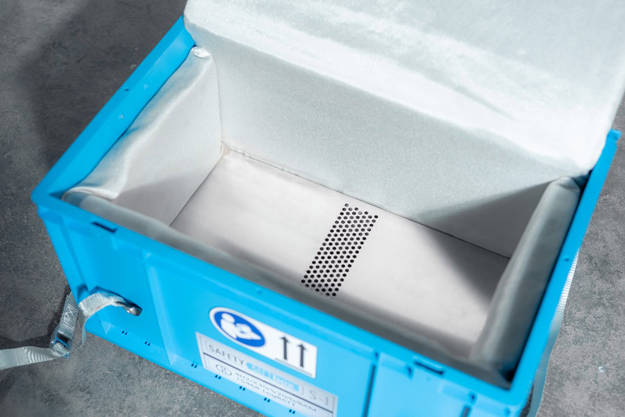 DER Sicherheitsstandard für Transport- und Brandschutzbehälter von kritisch defekten Lithium-Ionen-Batterien
